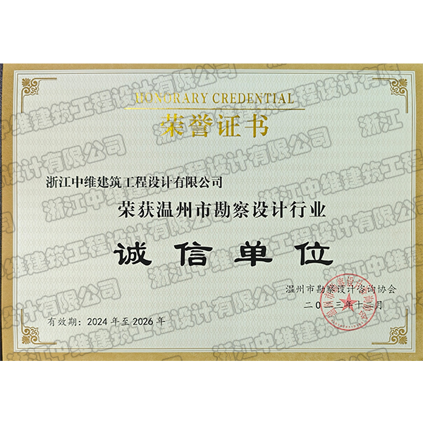 2024-2026温州市勘察设计协会诚信单位