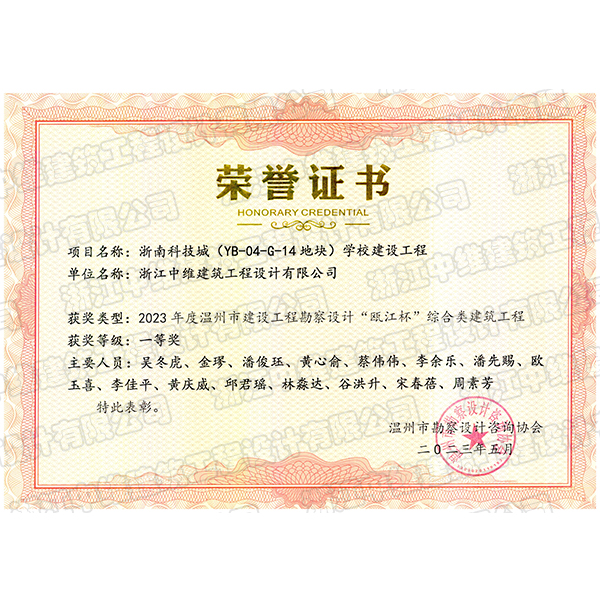 2023浙南科技城(YB-04-G-14地块)学校建设工程-“瓯江杯”综合类建筑工程一等奖