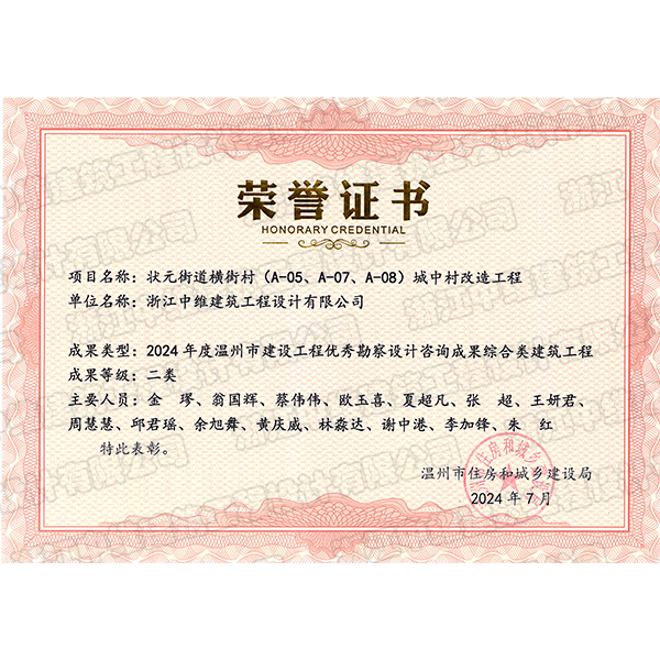 2024状元街道横街村(A-05、A-07、A-08)城中村改造工程-温州市建设工程优秀勘察设计咨询成果综合类建筑工程二类
