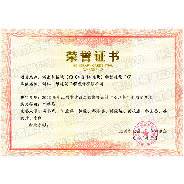 2023浙南科技城(YB-04G-14地块)学校建设工程-“瓯江杯”专项BIM组二等奖