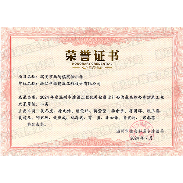 2024瑞安市马屿镇实验小学-温州市建设工程优秀勘察设计咨询成果综合类建筑工程二类
