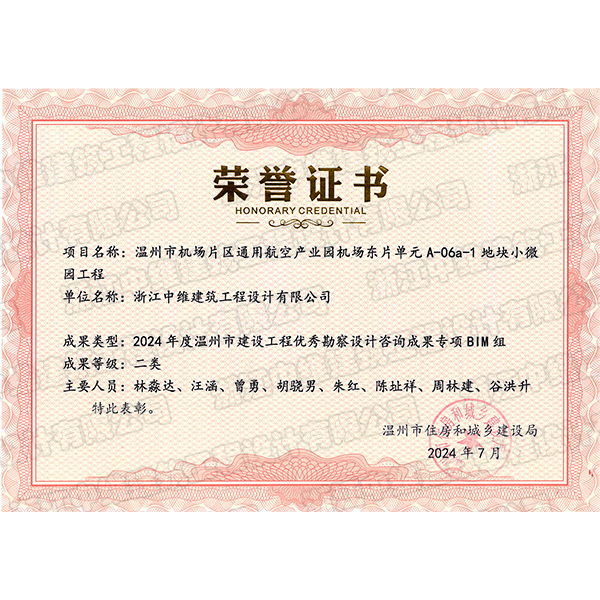 2024温州市机场片区通用航空产业园机场东片单元A-06a-1地块小微园工程-温州市建设工程优秀勘察设计咨询成果专项BIM组二类