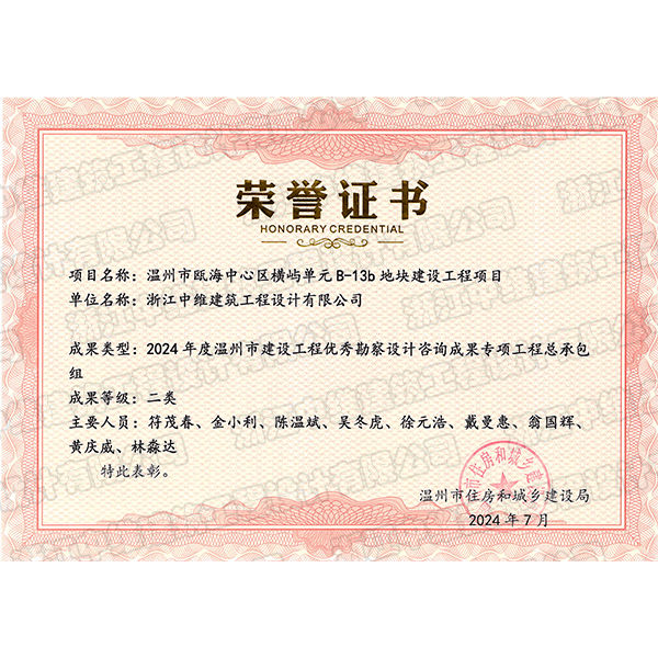 2024温州市瓯海中心区横屿单元B-13b地块建设工程项目-温州市建设工程优秀勘察设计咨询成果专项总承包组二类