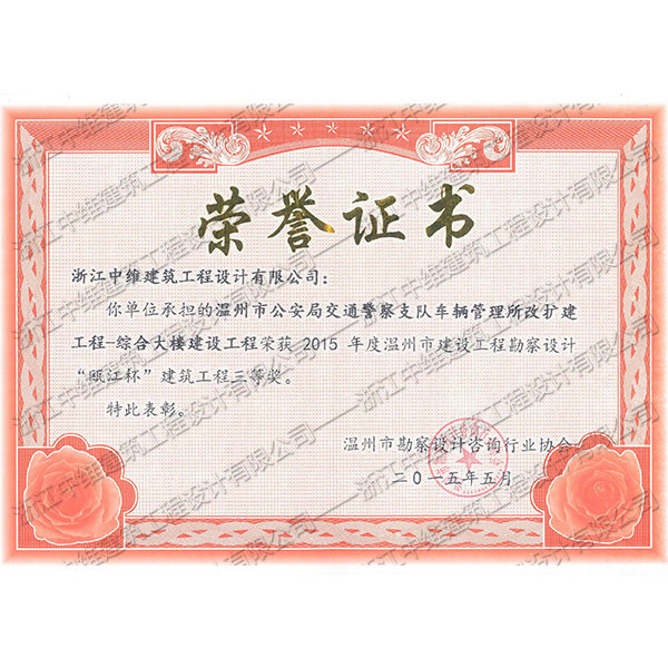 2015年瓯江杯三等奖-交警支队车辆管理所
