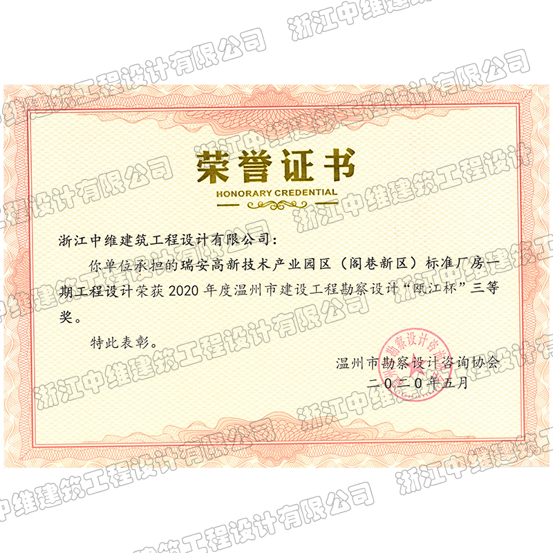 2020年瓯江杯三等奖—瑞安标准厂房一期工程