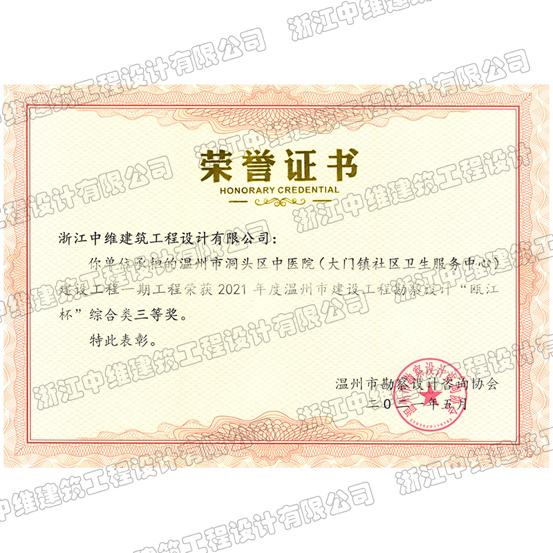 2021年“瓯江杯”综合类三等奖-温州市洞头区中医院(大门镇社区卫生服务中心)建设工程一期工程